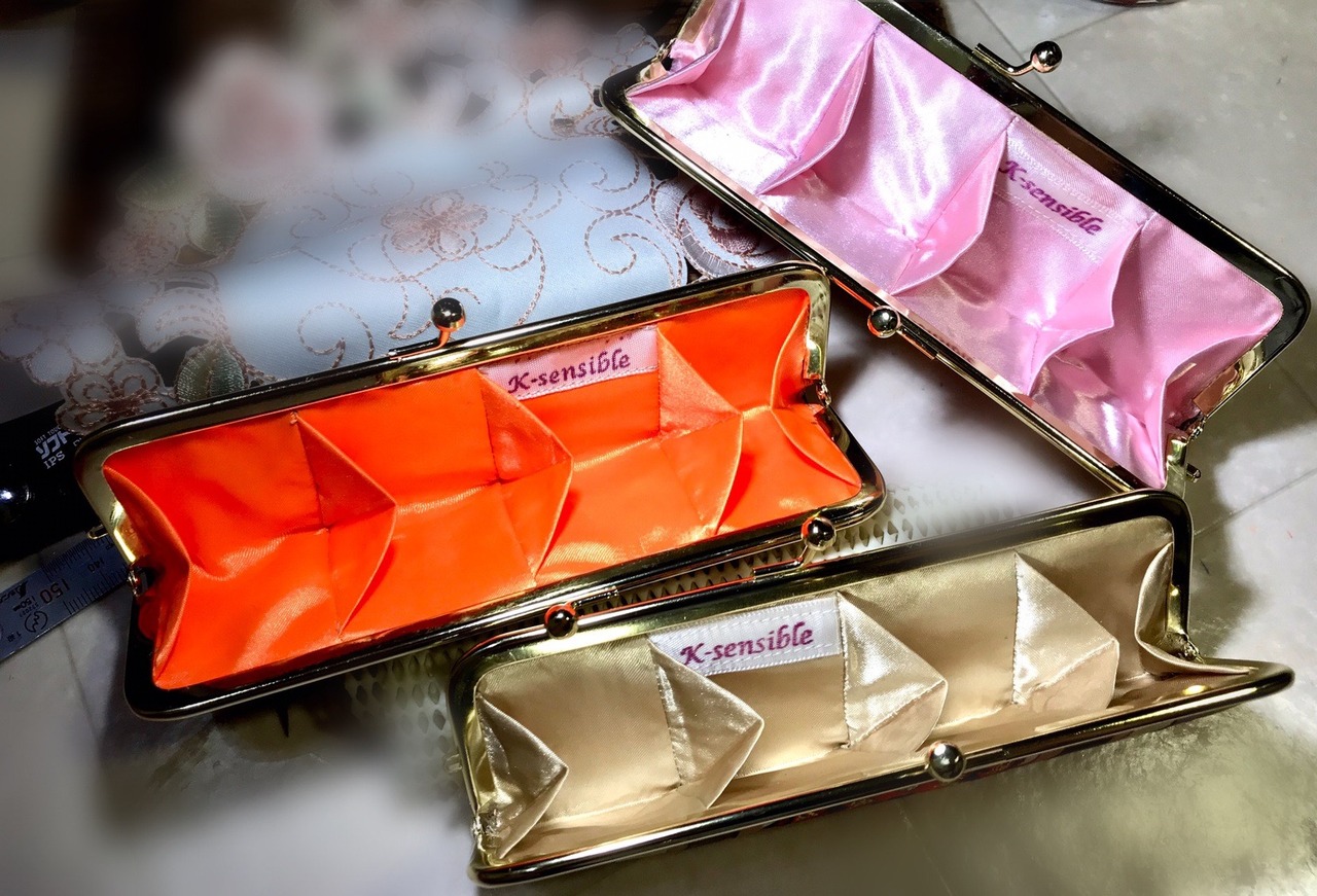 この表地と内側で使用するライトゴールド・ネオンオレンジ・サクラピンクの艶やかな3色のカラーから選んで頂き、組み合わせて作らせていただいています。